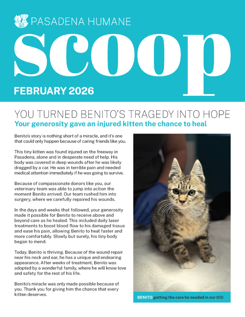 Scoop is a newsletter for Pasadena Humane friends and supporters.
