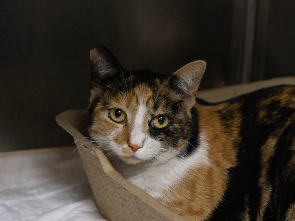 We are also incredibly grateful to the good Samaritan who heard the kitty’s meows and alerted us to her plight. Her quick action and compassion most likely saved this cat’s life. And in the best ending to this story, as soon as the little calico had recovered, the very same good Samaritan adopted her and took her home.