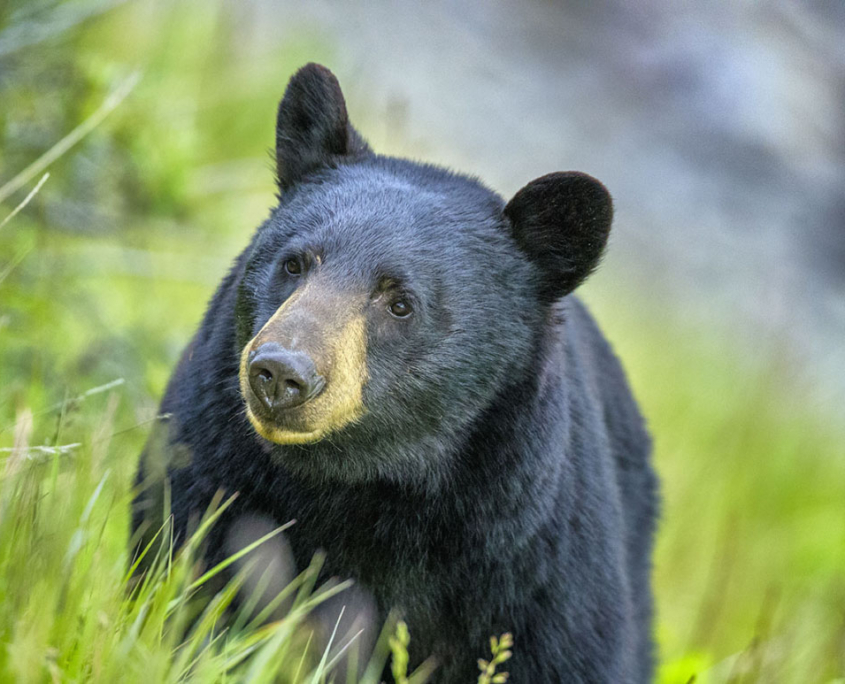 The normal human reaction to encountering a bear is to freeze or run away, which actually sends the bear the wrong message; you need to let the bear know that it needs to leave! First, make sure the bear has a safe escape route. When you are a safe distance from the bear, make eye contact and yell at the bear. If you have bear spray, make sure you are upwind of the bear before using it. Download this PDF.